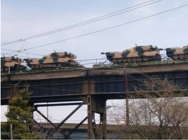 Se trata del paso de un convoy ferroviario por el interior de la localidad de La Grande, al norte de Kentucky (Estados Unidos). Sobre las plataformas de transporte pueden verse un total de 48 carros Abrams con el patrón de camuflaje de las fuerzas armadas marroquíes.