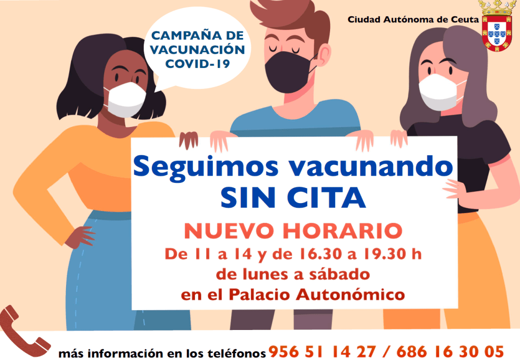 E.A.C. La Consejería de Sanidad, Consumo y Gobernación recuerda que debido a los avances registrados en la campaña de vacunación y con la evolución favorable que, en estos momentos, presenta la situación epidemiológica de la ciudad, a partir de este lunes 14, el Punto de Vacunación del Palacio de la Asamblea concentrará su actividad en aquellas horas en las que se registra una mayor afluencia de usuarios. Todo ello con el objetivo de gestionar los recursos de una manera más eficaz y eficiente.