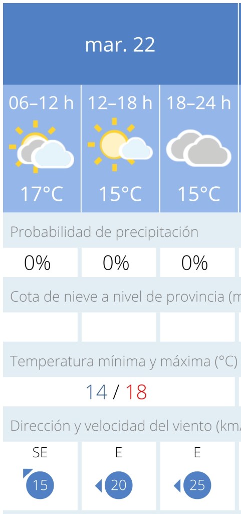 Las temperaturas serán muy similares a las de ayer, al preverse registros de entre 14 y 18 grados . El viento soplará flojo de dirección este.