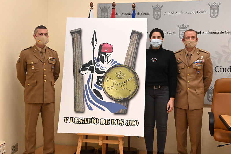 E.A.C. La consejera de Juventud y Deporte, Lorena Miranda, acompañada del coronel José María Moro, jefe del Grupo de Regulares, y el capitán Sergio Ortiz de Zárate, director de la prueba, han presentado en el Palacio Autónomico la quinta edición de la prueba cívico militar El Desafío de los 300, que se celebrará el próximo 21 de mayo.