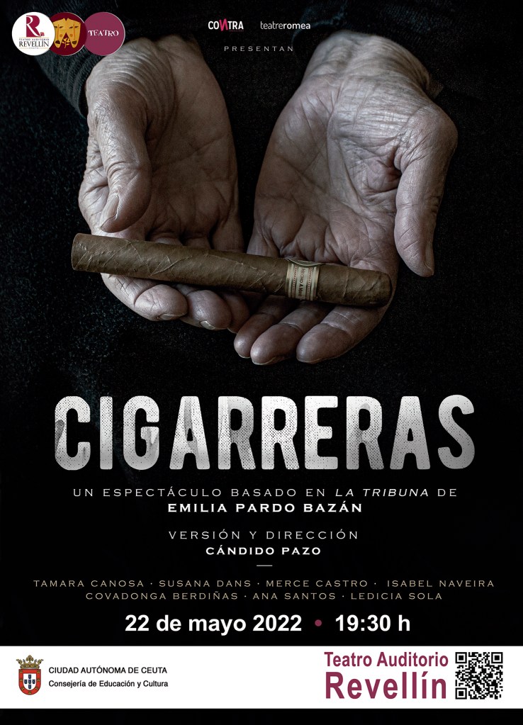 E.A.C. La Consejería de Educación y Cultura informa que la representación teatral «Cigarreras« prevista para el día 23 de abril a las 19:30 horas en el Teatro Auditorio Revellín, ha sido aplazada al día 22 de mayo a la misma hora (19:30). El motivo de este aplazamiento obedece, según información facilitada por la compañía, a que una de las actrices principales ha dado positivo en COVID.