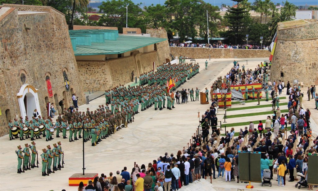 E.A.C. Este sábado 7 de mayo se ha desarrollado en las Murallas Reales una Jura de Bandera para personal civil organizada por el Tercio Duque de Alba, Segundo de la Legión, de la Comandancia General de Ceuta COMGECEU), en colaboración con la Delegación de Defensa, presidida por el general Segundo Jefe de la COMGECEU, Fernando Rocha y Castilla, y al que han acompañado la vicepresidenta primera del Gobierno de Ceuta, Mabel Isabel Deu, los jefes de las unidades de la COMGECEU, y otras autoridades civiles y militares de la ciudad.