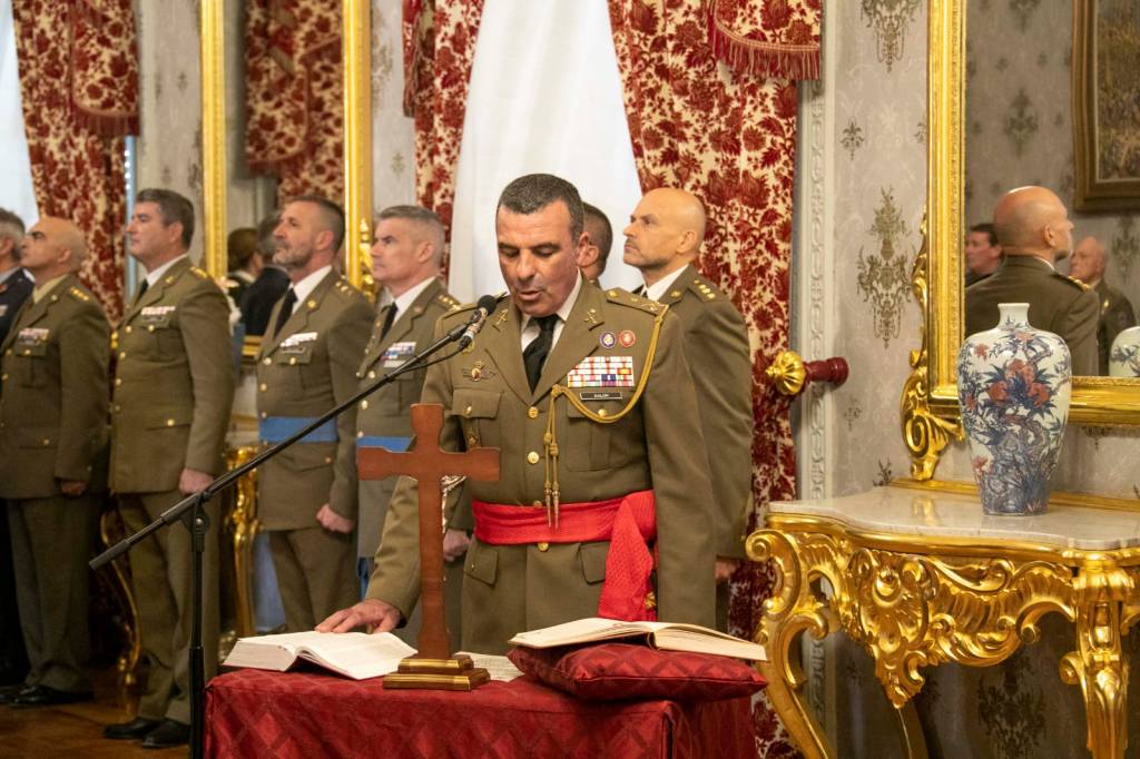 Posteriormente, con el Salón del Trono del Palacio de Capitanía como escenario, tuvo lugar el acto propiamente dicho de Toma de Posesión y Juramento del Cargo. Tras la lectura del Real Decreto de nombramiento como Jefe del Mando de Canarias, el general Salom juró su cargo y dirigió unas palabras a los presentes, donde agradeció a la cadena de Mando, personalizada en este caso en el General de Ejército JEME, su confianza al designarle para este exigente puesto, teniendo también unas palabras de reconocimiento para su antecesor el Teniente General Escámez, presente en el acto.